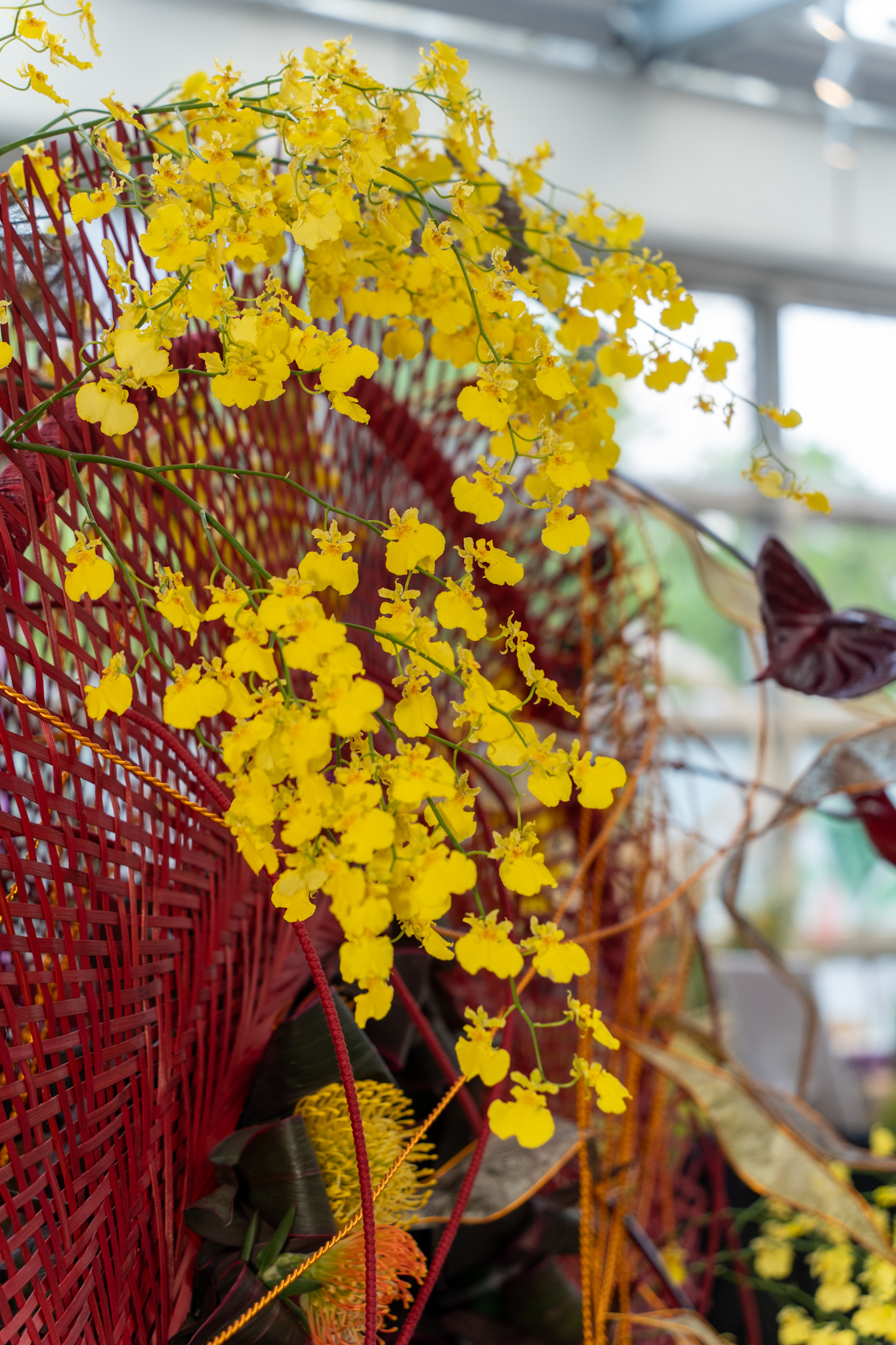 時光流轉不息,而大自然卻以它的方式永恆循環。四季更新,各有植物依時生長,為天地喧染上不同的情緒與色彩。 秋天,金風送爽,來色漸染,一切都沈浸在溫暖而詩意的色調裏,就像是一封寫給大地的情書。作品以秋天作為設計題材,用上合時花與葉材,在金黃、赭石與暗紅之間,交織出深邃而溫柔的秋日印象。加上改變植物原有的形態,以線條去訴說季節變換的故事,為作品注入屬於秋天的沈靜與浪漫。
